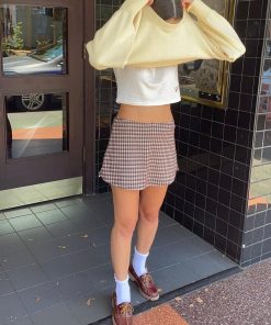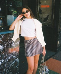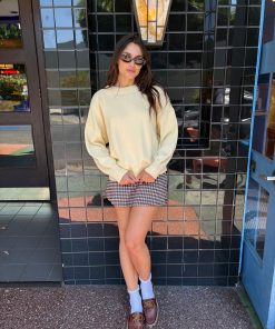 From the LSG Fall Collection, the Darcy Skort is an ultra mini skirt with a built in short and elastic waist band. Made in a soft stretch woven plaid fabric. Runs true to size.