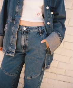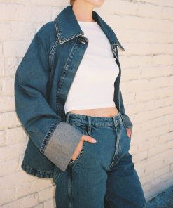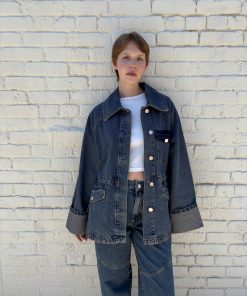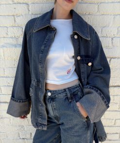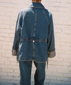 A perfect mix of tailored and oversized, the Emilie Workwear Jacket in vintage wash features a drawstring waist to create a cinched silhouette.