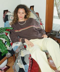 100% Organic Cotton, and 100% will be mistaken for a vintage sweater. In the perfect stolen-from-the-back-of-your-dad’s-closet fit. Long sleeves, wide, boxy cut and a two-toned horizontal stripe down the center.