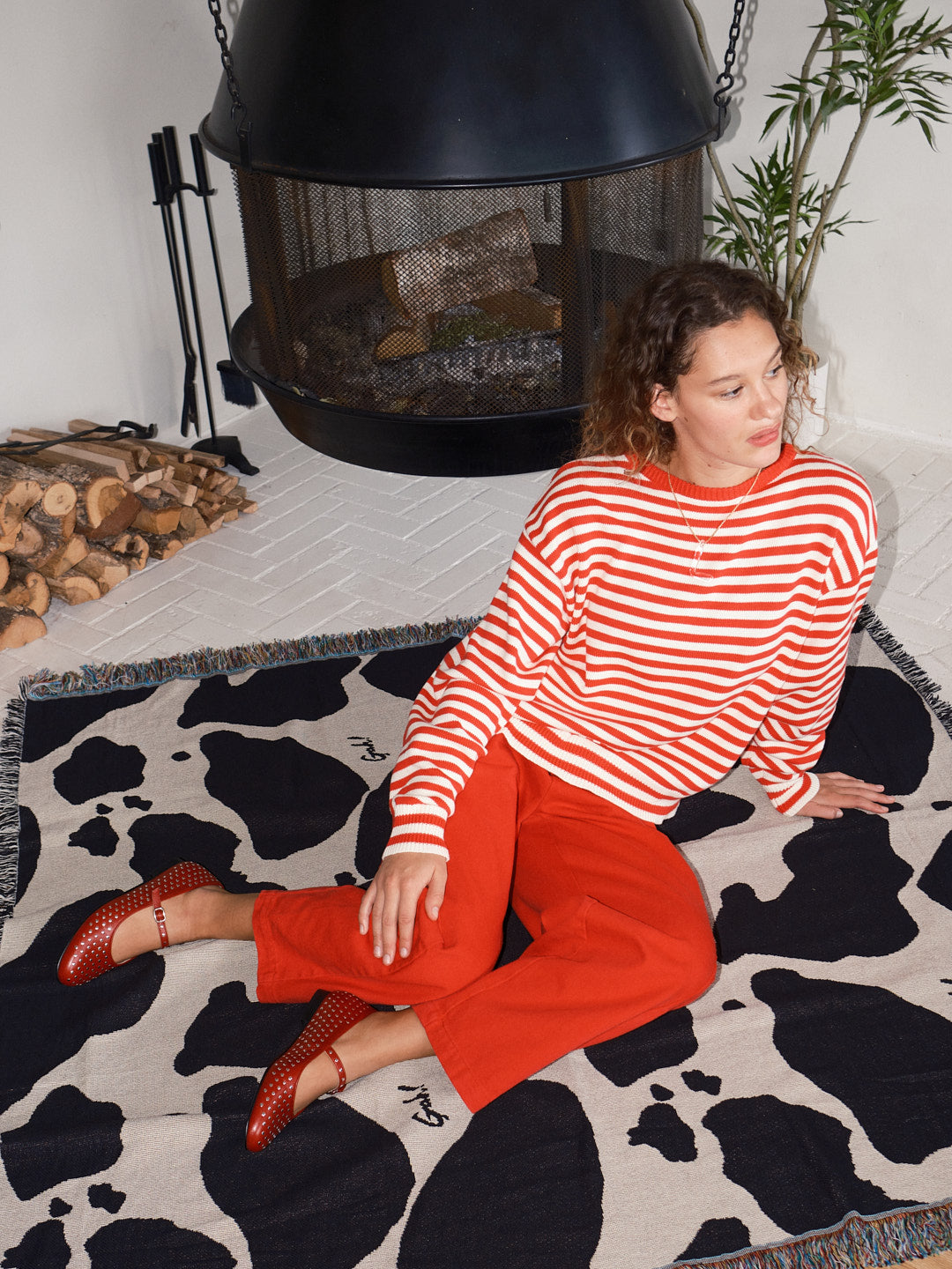 100% Organic Cotton, and 100% will be mistaken for a vintage sweater. In the perfect stolen-from-the-back-of-your-dad’s-closet fit. Long sleeves, wide, boxy cut.