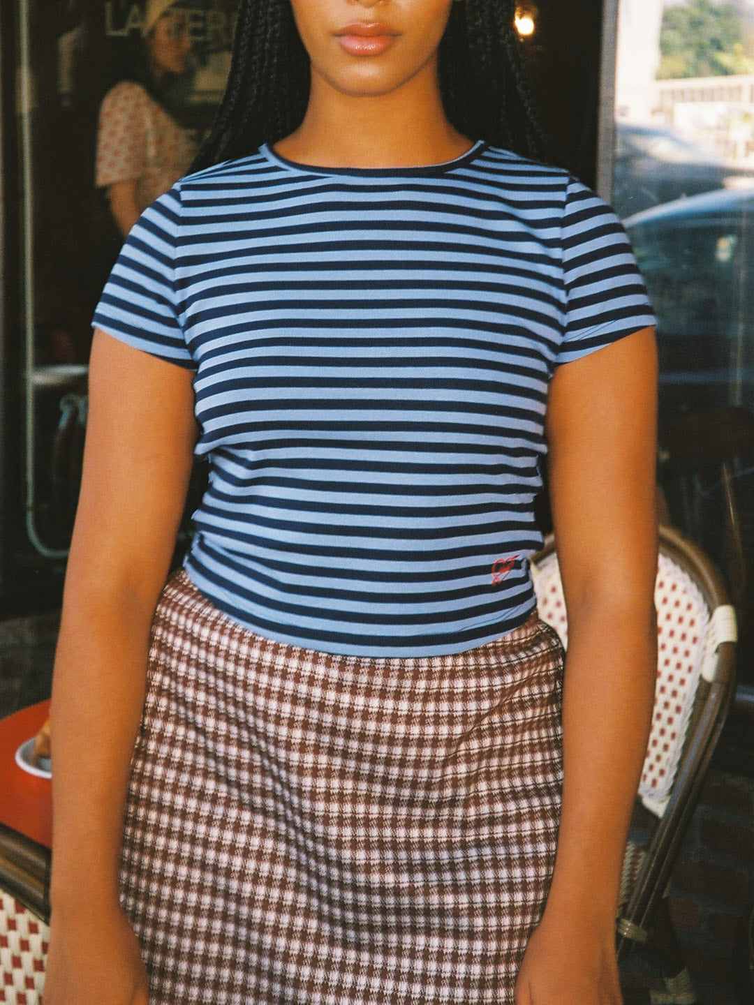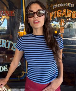 Introducing Le Petit Dot: Dots, stripes, and silhouettes made for the season in-between. The Jude Tee in our signature Oxford Stripe print is a true staple for any wardrobe. This cotton tee has a boxy, cropped silhouette. Made to have a vintage-feel. Featuring our signature Gah! embroidery at the bottom hem.