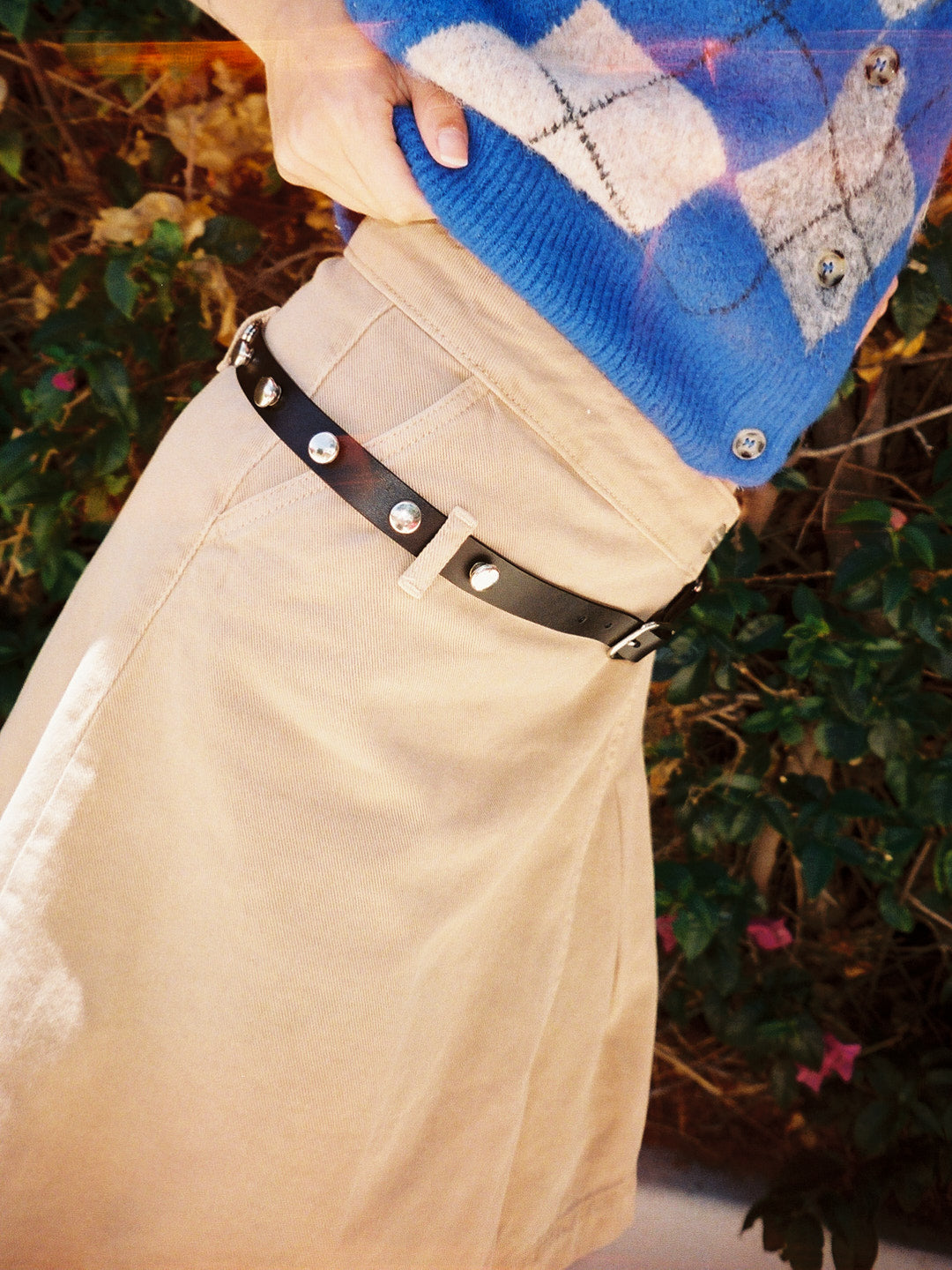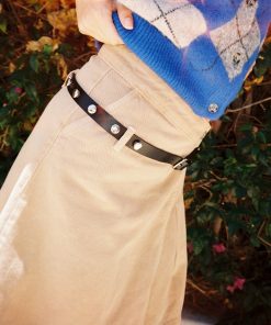 A customizable studded belt in genuine black leather. Comes with 3 stud options: hearts, stars, and classic circular snaps.